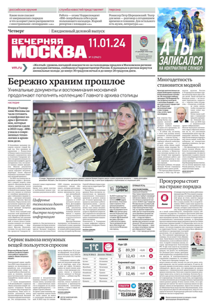 «Вечерняя Москва» — ежедневная российская вечерняя газета, старейшее из вечерних изданий в России, учрежденное в 1923 году. Выходит пять дней в неделю, кроме субботы и воскресенья. Отличается тем, что рассказывает о событиях еще не завершившегося дня. Оперативно освещает хронику и особенности жизни Москвы, охватывает все слои общества и большинство профессиональных и возрастных групп читателей.Издание представлено тремя выпусками – утренним ежедневным, вечерним (выходит три раза в неделю), еженедельным (выходит по четвергам).